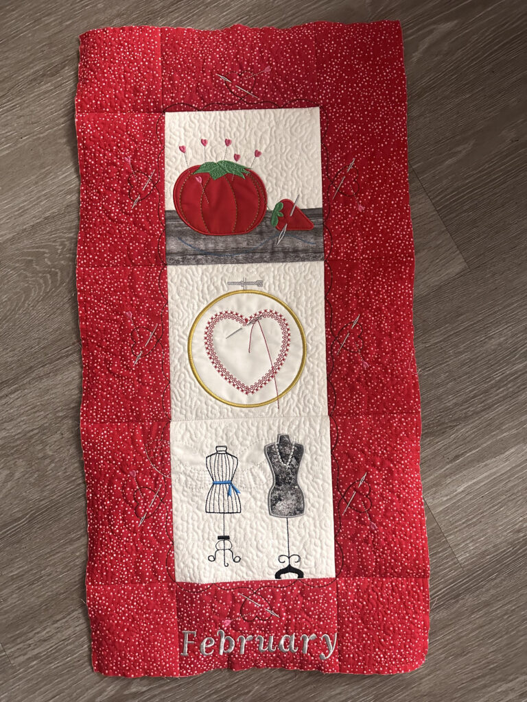 The January Files and Kit are for the FEBRUARY wall hanging, as pictured. This way, we can work on the February wall hanging in January, and you will have your February Wall Hanging finished and ready to display at the beginning of February.