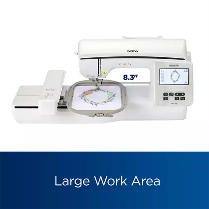- Large work area Enjoy working on a generous 6" x 10" embroidery area, and with a sizeable 8.3" from needle to arm so you can tackle big projects.