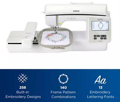 The perfect machine to launch your embroidery journey, the Innov-Ãs NQ1700E has a host of premium features to get you started. With the NQ1700E, you can embellish and personalize all of your DIY projects with 258 built-in embroidery designs, 140 frame pattern combinations, and 13 embroidery lettering fonts, plus a large 6″ x 10″ embroidery area so you can tackle those big projects. Edit your creations right at your fingertips on the generous 4.85″ color LCD touch screen display and when connected to a wireless network, send designs to your machine using Design Database Transfer (no USB needed).