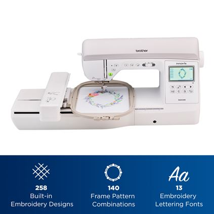 - An abundance of built-in embroidery designs 258 built-in embroidery designs, 140 frame pattern combinations, and 13 lettering fonts for your embroidery side.