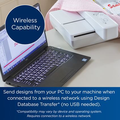 - Wireless Capability When connected to a wireless network, send designs to your NQ3550W using Design Database Transfer1 (no USB needed).