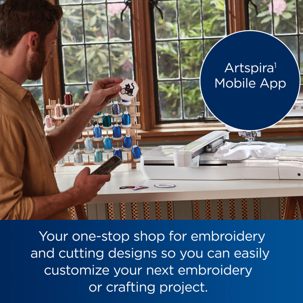 - Mobile Apps- The Artspira Mobile App‡ is your one-stop shop for embroidery and cutting designs so you can easily customize your next embroidery or crafting project. Design line-art-inspired embroidery drawings right in the palm of your hand on your mobile device, Artspira‡ will have you creating on the go. Use the My Design Snap mobile app‡ to turn line art, handwriting or printed clip art into embroidery data. It’s as easy as 1-2-3. Be alerted when it’s time to change the thread or when your project is complete with the My Stitch Monitor App‡.