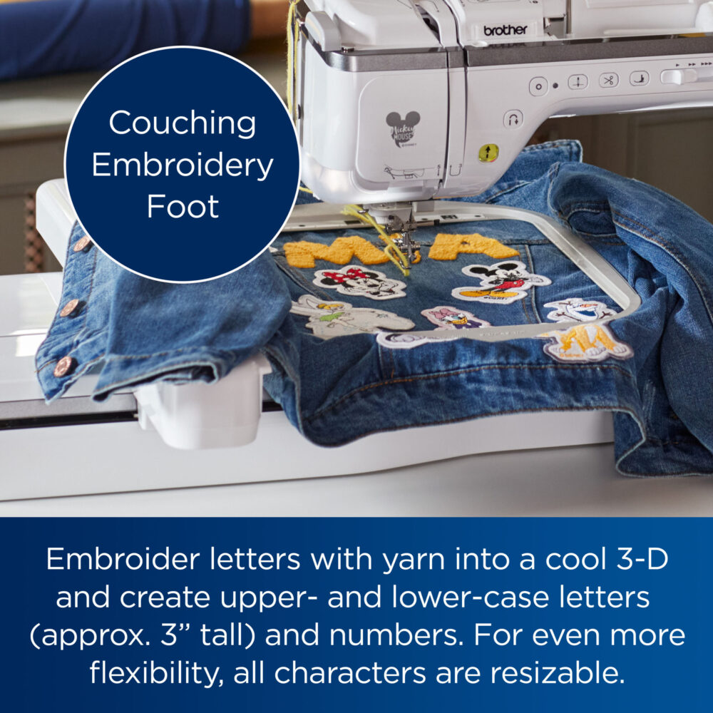 - Yarn Couching- Turn embroidery letters with yarn into a cool 3-D effect using the Couching Embroidery Foot.
