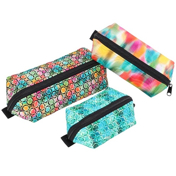 Multipurpose zippered pouches in three sizes open to create shallow trays that provide great visibility and easy access to contents.