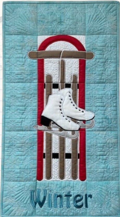 Kit includes fabrics to make the Snow Day mini wallhanging as shown, including: