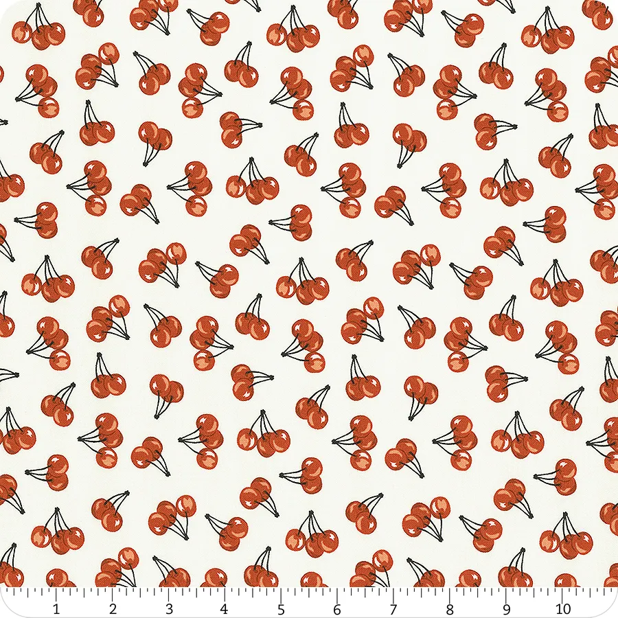 Porcelain Farm Fresh Cherries Yardage from the Farmstead fabric collection by Stacy Iest Hsu for Moda Fabrics