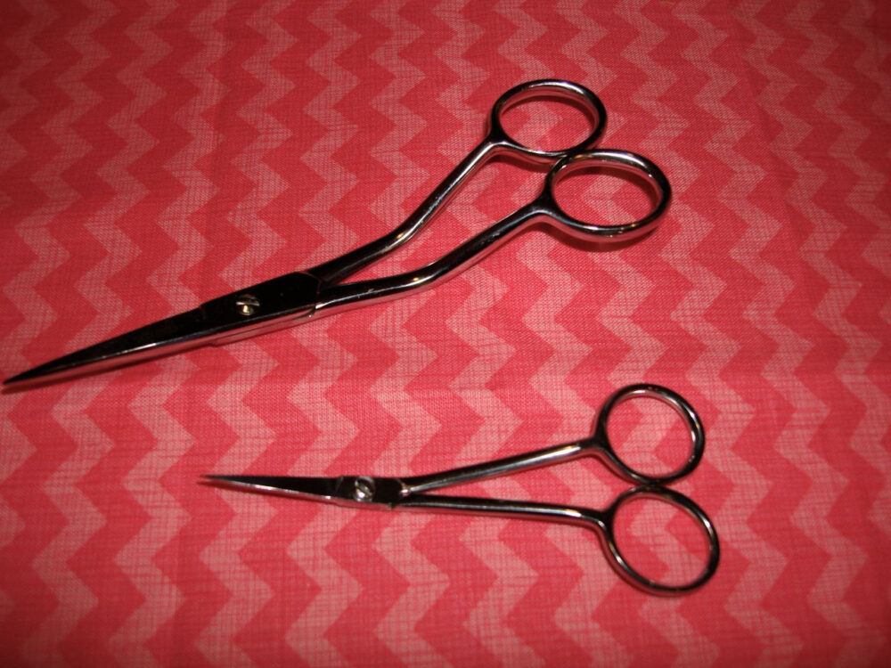 HoopScissors Mini is a smaller size than the original HoopScissor which makes it perfect for hard to reach areas! With HoopScissors Mini you can trim closer with thinner blades and they are PERFECT for applique! Offset handle and pointy blade make it easy to reach down in the hoop.