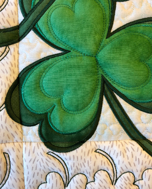 We’ve added our “Lucky Shamrock” to the lineup! This adorable stack of shamrocks includes subtle shamrock background quilting and a fun shamrock border!