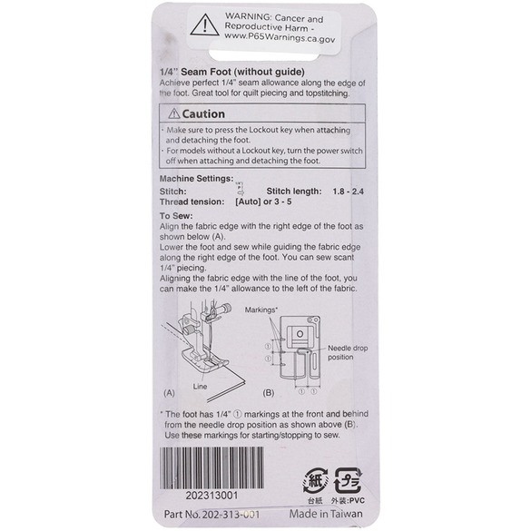 - Presser Foot Type1/4 in (Quarter Inch) Foot