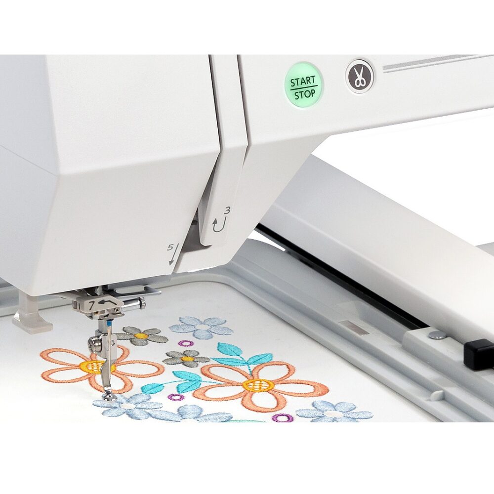Janome’s largest stand-alone embroidery machine with 7.9 x 14.2″ of creative space