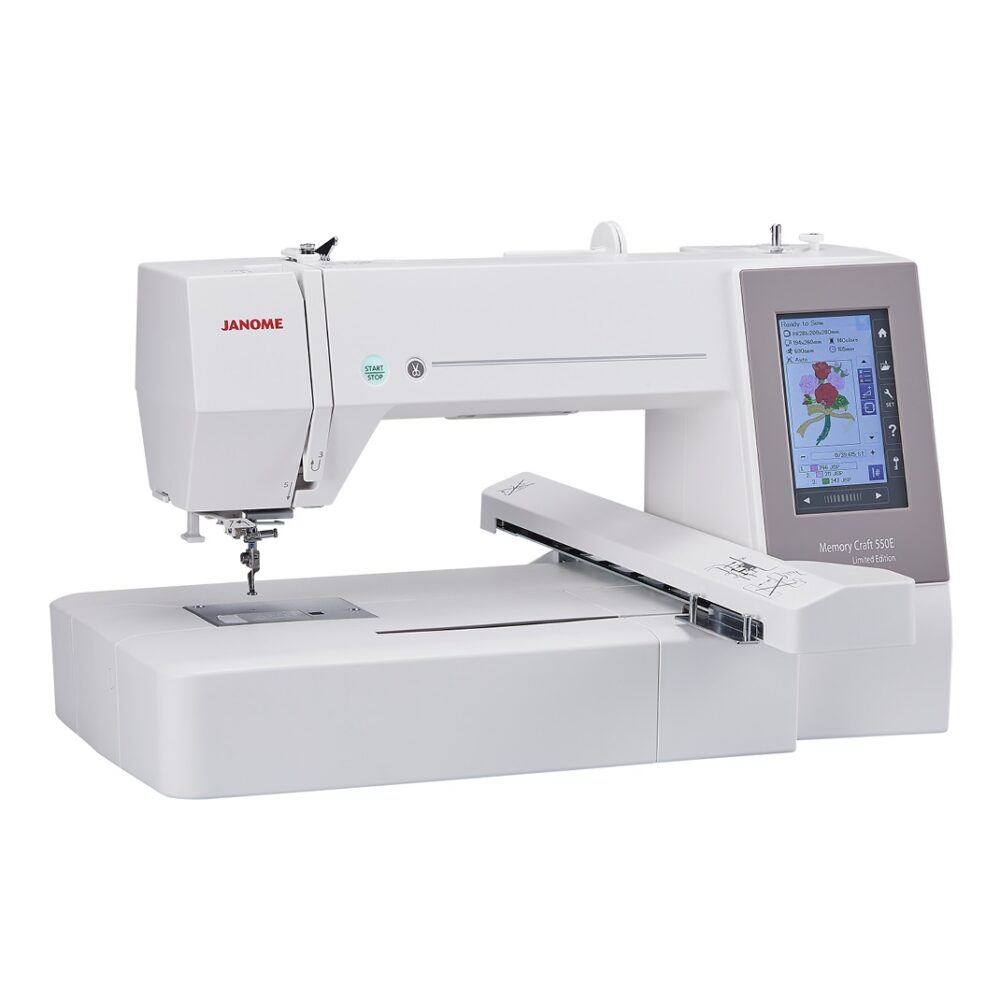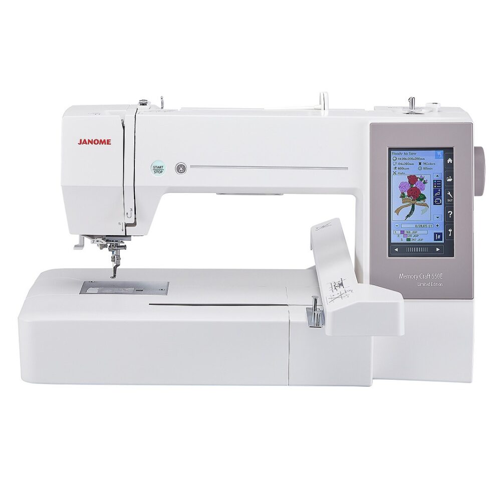 Open up a new world of possibilities with the Janome MC550E Limited Edition. The perfect sewing companion personalizes the largest projects, easier and faster with embroidery speeds of up to 860 spm. Explore the rewarding joys of embroidery with the 4 included hoops and AcuStitch (PC compatible software). For your biggest projects, the Limited Edition also includes a USB drive with 30 large exclusive designs.