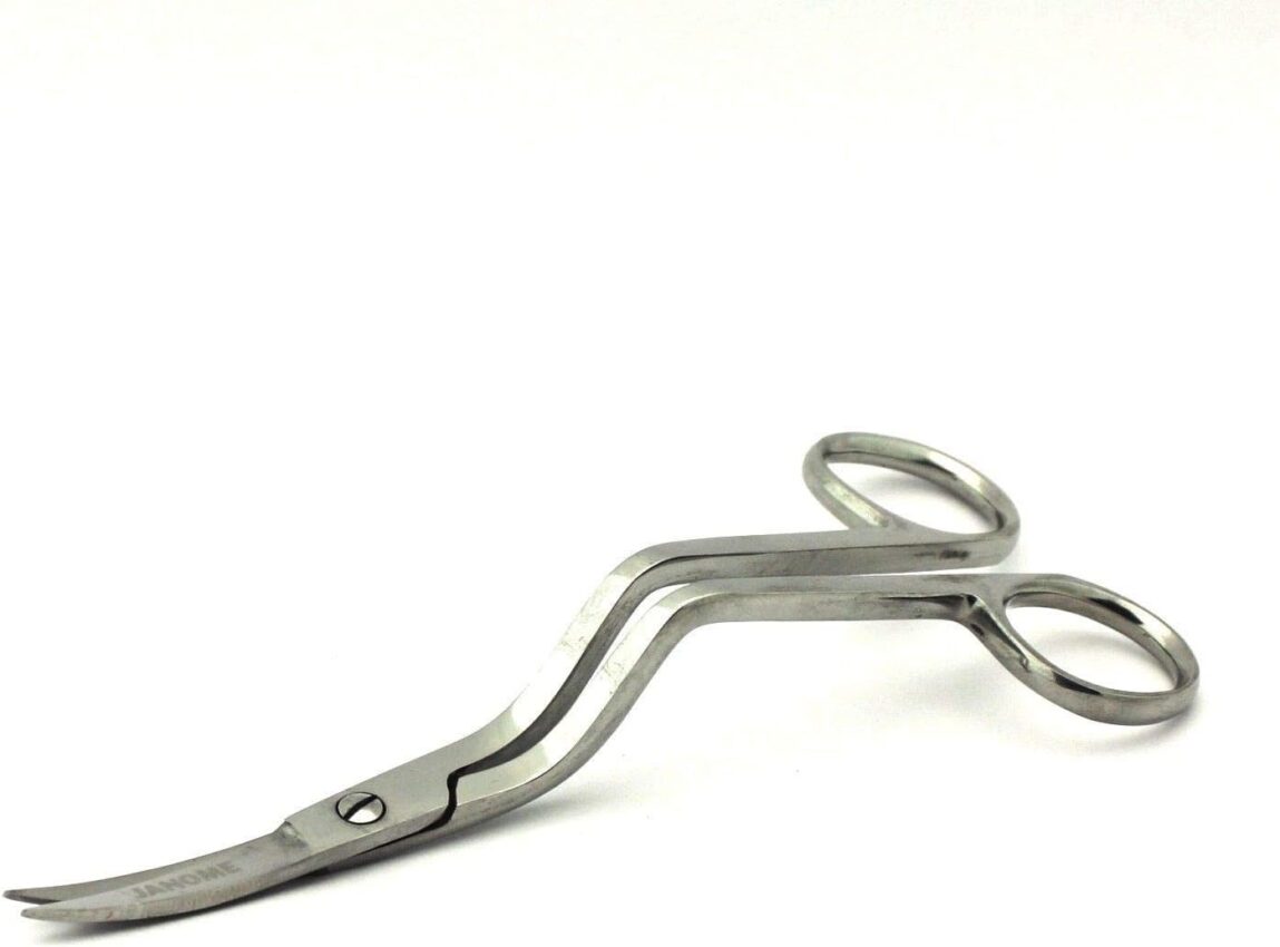 The double angle curve of these scissors allows for maneuvering over the hoop and under the presser foot. Made from idustrial grade steel, nickel chrome plating, heirloom quality. Ideal for clipping threads and trimming jump stitches.