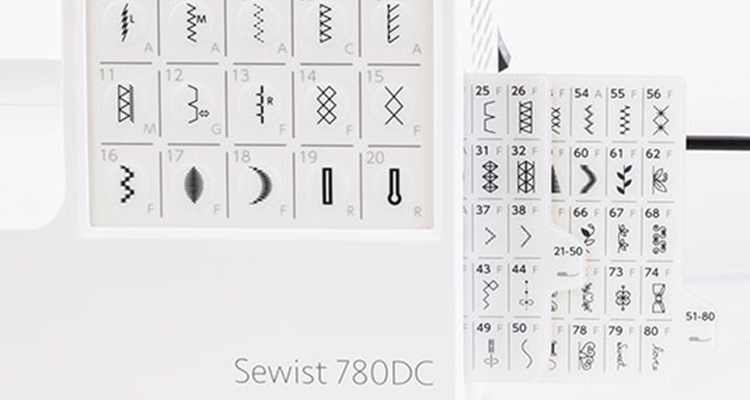 This machine has 80 stitches for many various sewing applications. Direct stitch selection is available for 20 stitches, and the other 60 stitches are pictured on the easy access slide-out stitch charts. When a stitch is selected, the LCD screen shows the selected stitch, recommended foot, default stitch width, and length, which you can change to suit your requirements. The Sewist 780DC also offers a choice of 3 styles of one-step buttonholes.