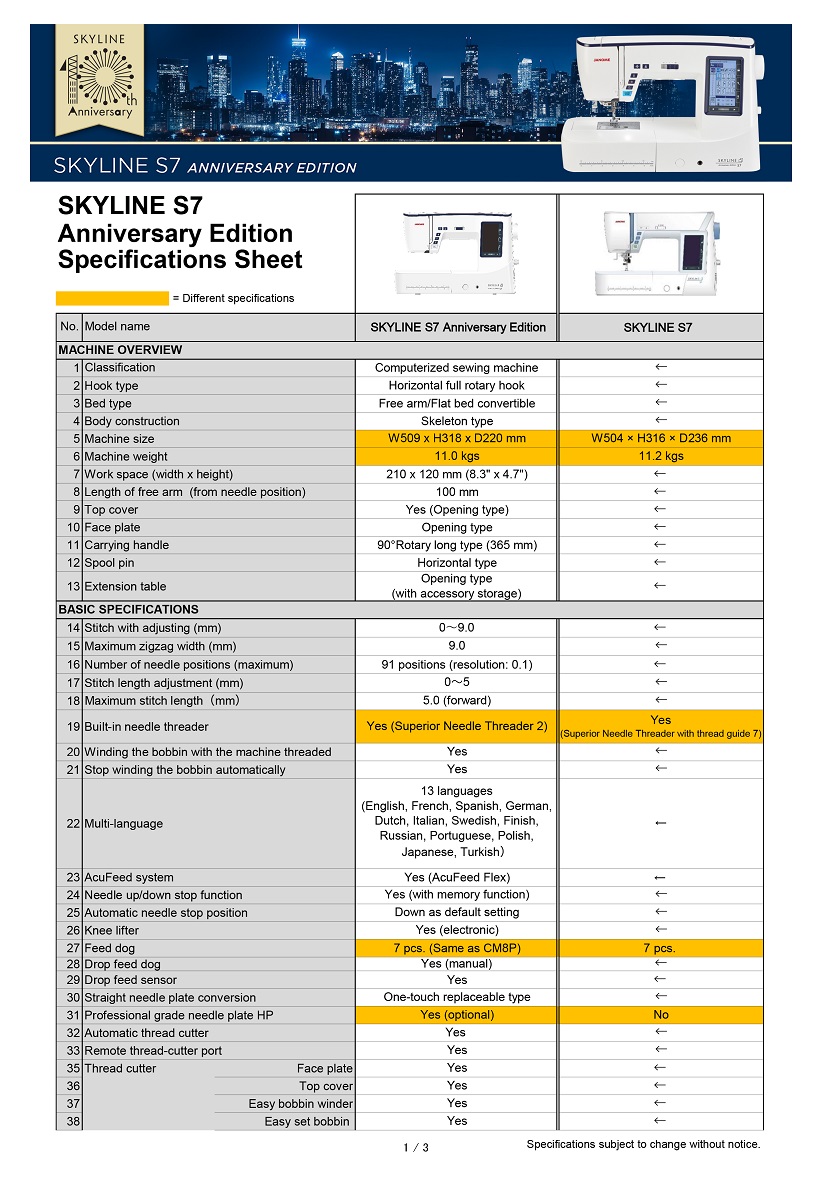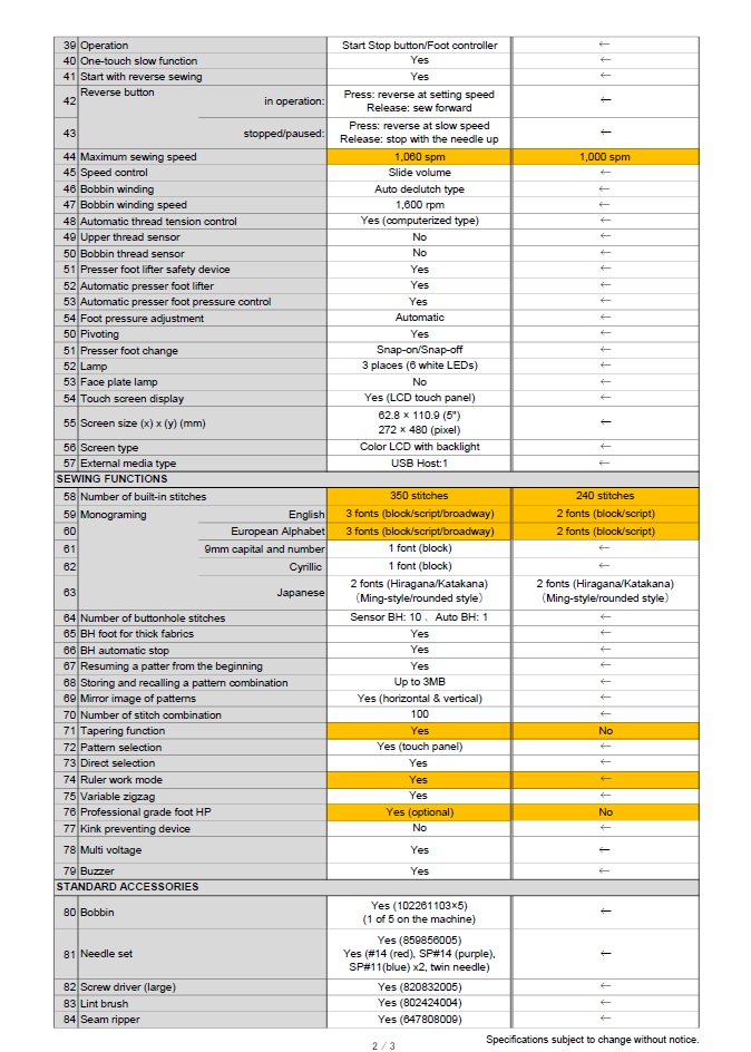 - Maximum sewing speed: 1,060 SPM