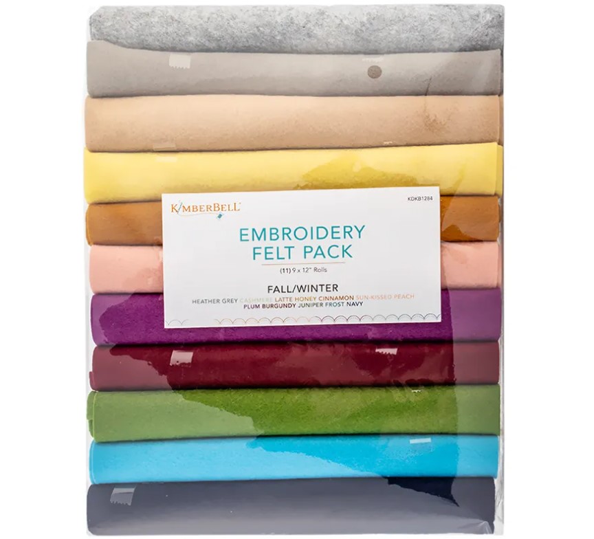 Fall & Winter Embroidery Felt Pack includes a variety of colors to coordinate with Kimberbell’s fall and winter release projects including Falling for Autumn, Nativity Stuffies and In All Things Give Thanks. This embroidery felt is a luxurious choice for use in a variety of crafting projects. From embroidery to applique, this soft felt will add a touch of refinement to any design. Package includes 11 sheets of felt.
