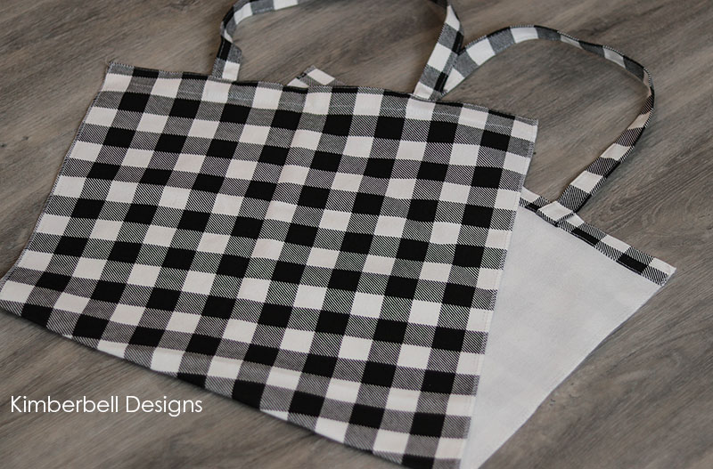 Kimberbell’s Blank Buffalo Check Totes come without the side seams sewn up so it’s easy to hoop the bag itself, then add the adorable embroidery. The edges are serged too, so the bag won’t fray when you finish the side seams with a simple straight stitch.