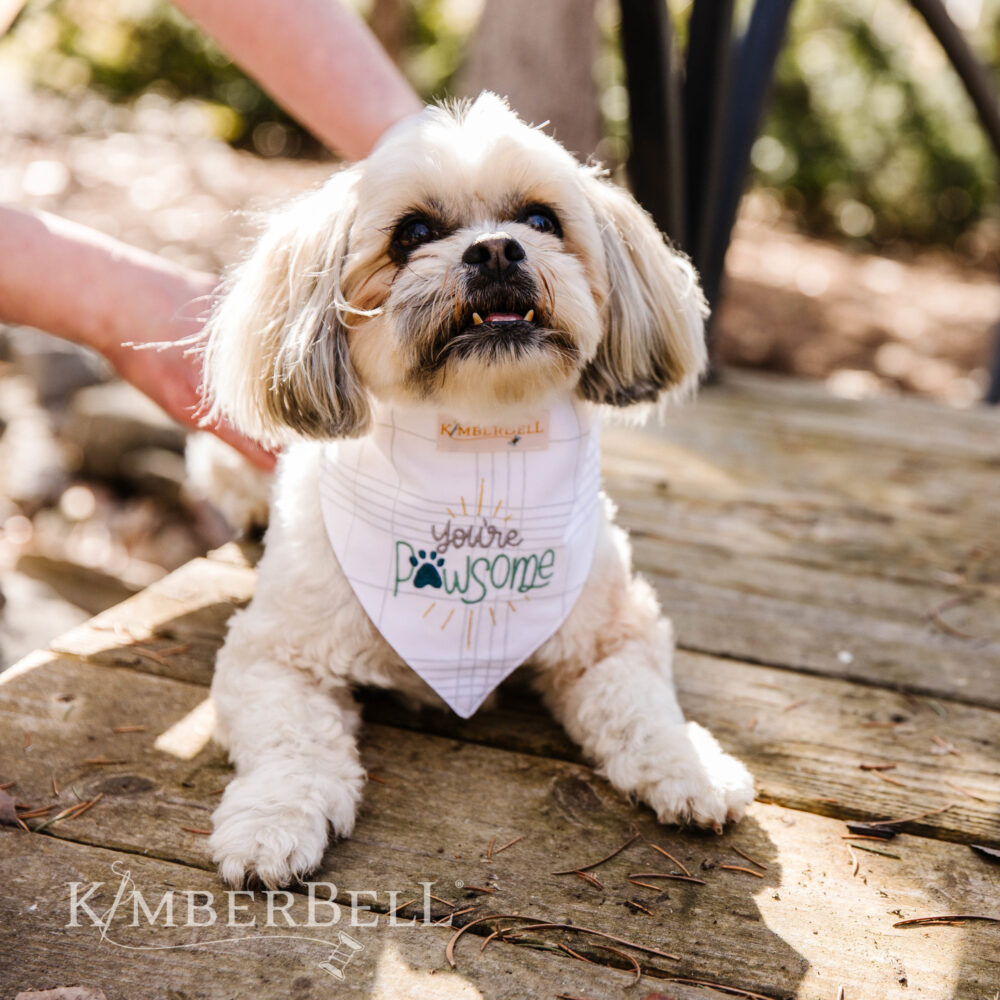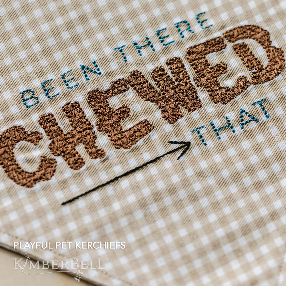 “Did someone say walk?” Kimberbell Playful Pet Kerchiefs are paws-itively darling for animals large and small. Eight designs come in four sizes each: two for 4×4 hoops (XS and S) and two for 5×7 hoops (M and L). Stitch Nice Things, Pup Graffiti, Dog Kisses, Walk?, Chewed That, Pawsome, and Pooch or Cat Parade on Pet Kerchief Blanks, or add the designs to tote bags and more! From pet groomers and dog walkers to your favorite furry friends, there are so many “paws-ibilities” with Playful Pet Kerchiefs.