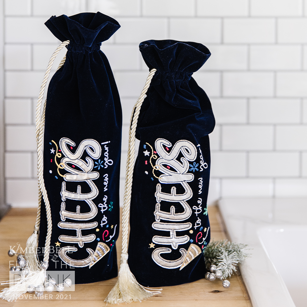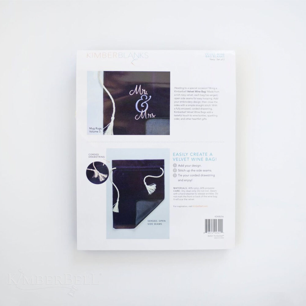 Heading to a special occasion? Bring a KimberBell Velvet Wine Bag! Made from a rich navy velvet, each bag has serged, open side seams for easy hooping. Add your embroidery design, then close the sides with a simple straight stitch! With a fully encased, corded drawstring, KimberBell Velvet Wine Bags add a tasteful touch to wine bottles, sparkling cider, and other heartfelt gifts.