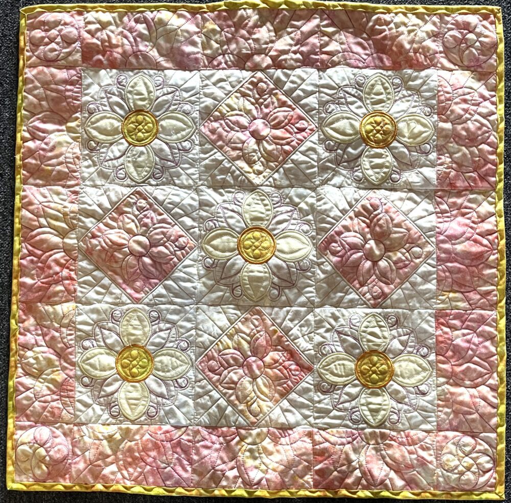 Fabric kits include all fabrics shown to complete the Mary’s Garden Quilt from Hoopsisters Masterclass. Choose 5″ or 8″ block size. 5″ finished size 19.5″x19.5″, 8 inch finished size 31″x31″