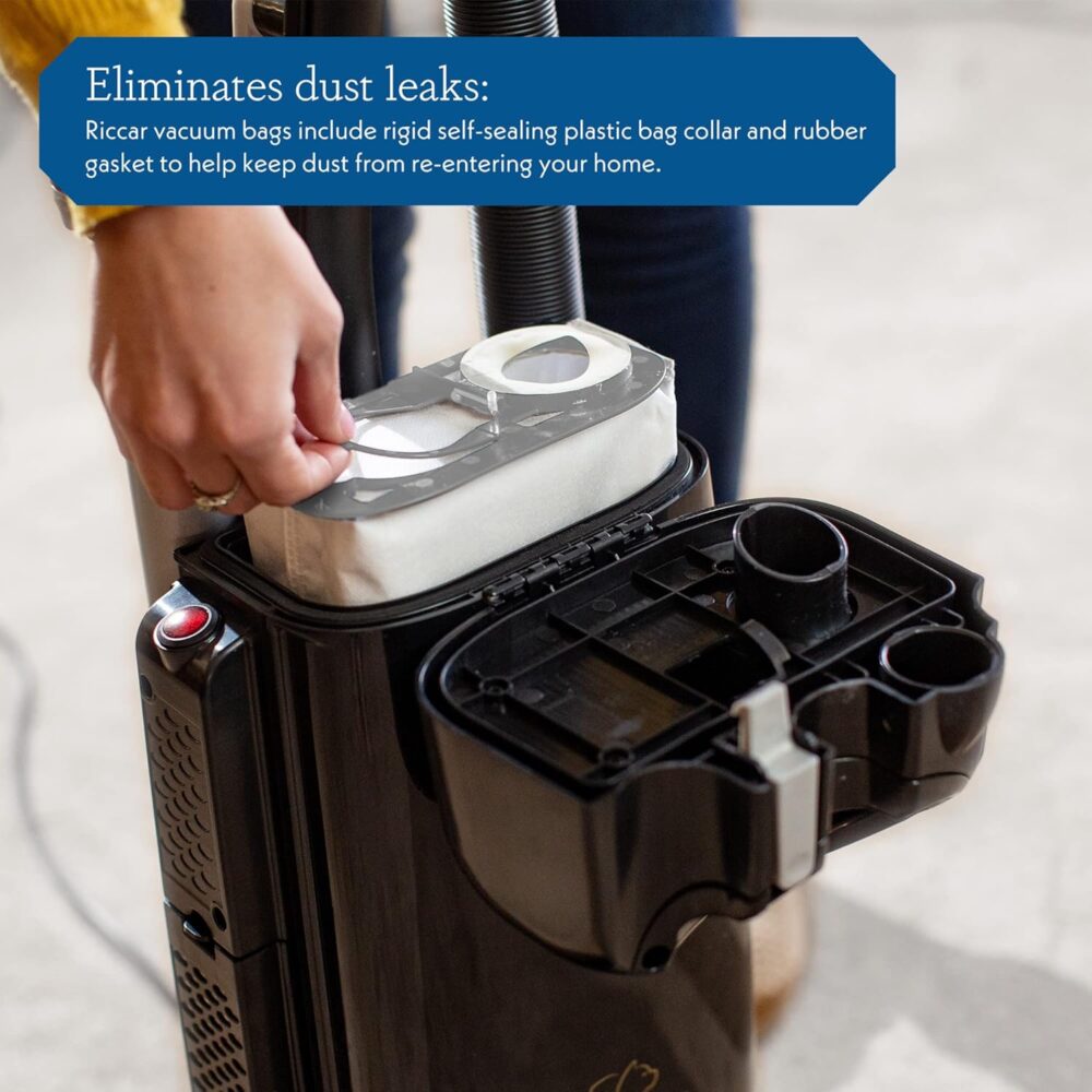 - Eliminates dust leaks: Riccar vacuum bags include rigid self-sealing plastic bag collar and rubber gasket to help keep dust from re-entering your home and help protect your vacuum with bags