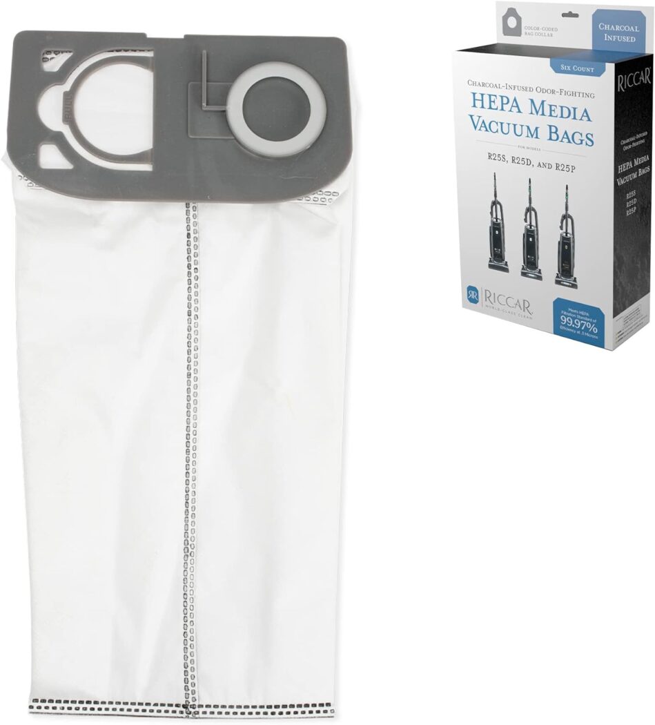 - Set of 6: Includes six Riccar R25 Series charcoal-infused top loading high capacity vacuum replacement bags with HEPA media filtration