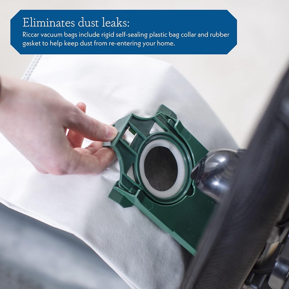 - Eliminates dust leaks: Riccar SupraLite vacuum bags include rigid self-sealing plastic bag collar and rubber gasket to help keep dust from re-entering your home and help protect your lightweight vacuum cleaner
