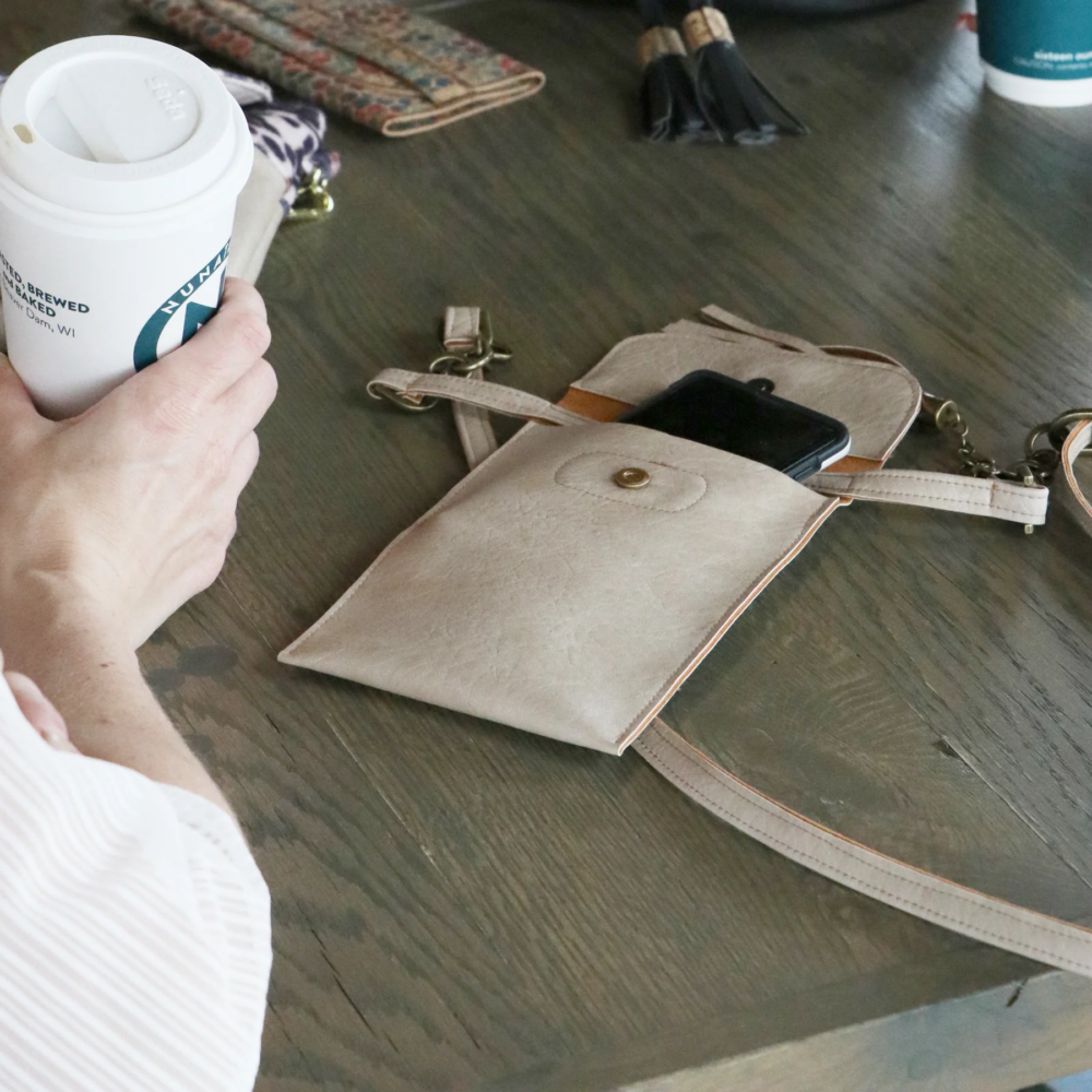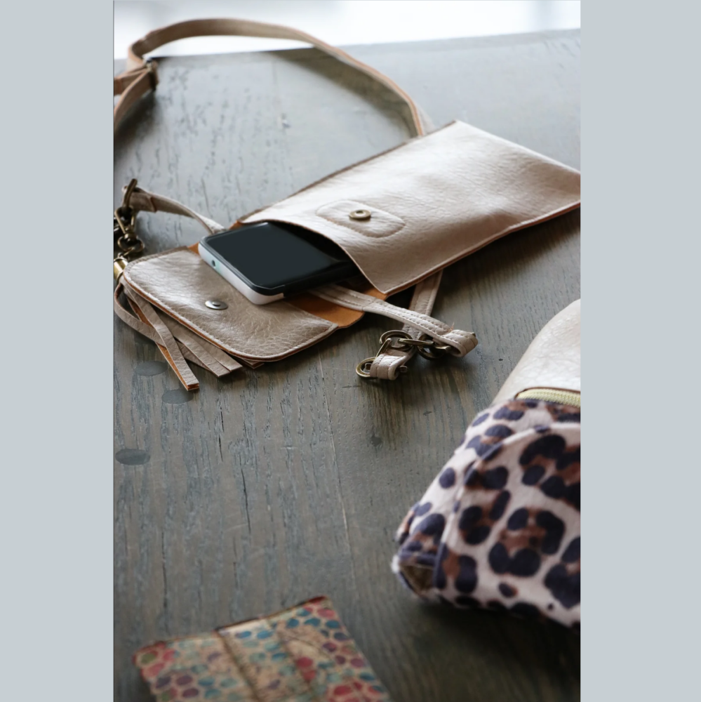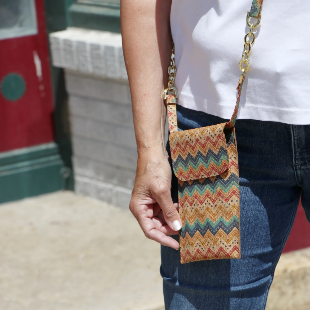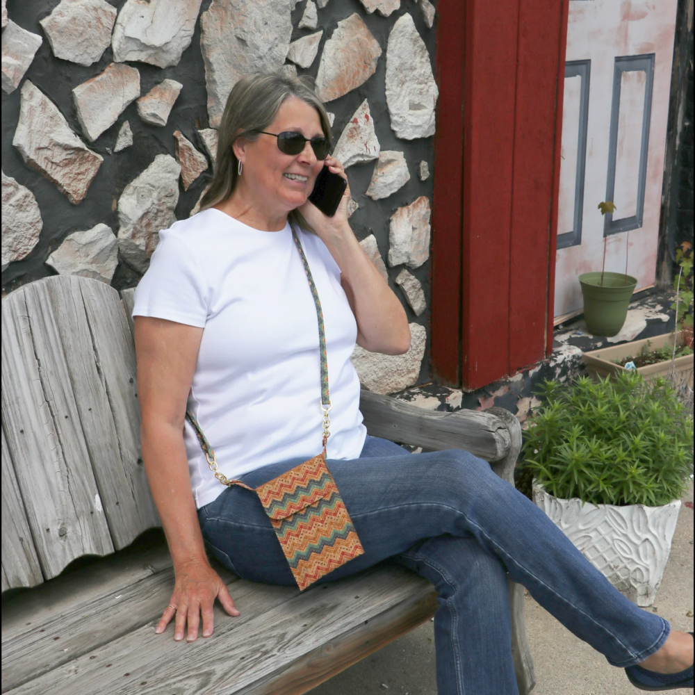Taking a walk? Going to a festival or sporting event? Travel light with our Sophie cell phone and card case pattern. By carrying your cell phone and ID/credit card with this convenient cell phone holder, you won’t be weighed down by a traditional crossbody bag. Now you can carry your essentials comfortably with you!