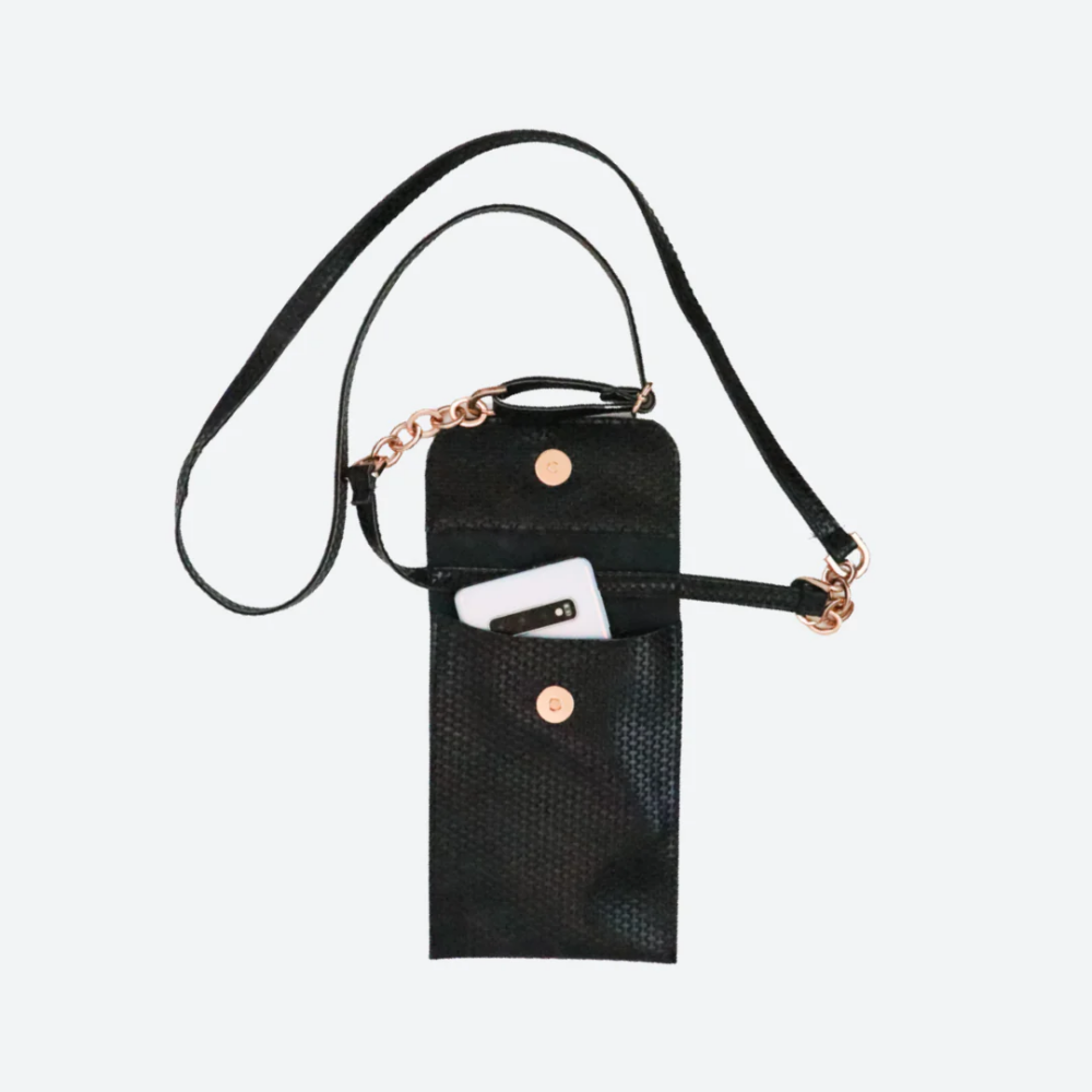 Sophie features an inside ID/card slot for carrying those essentials, making it a breeze! Bring along what you need in style without the weight of a traditional crossbody bag! Adjust the length of Sophie with the slider buckle, snap in your favorite items with our magnetic snap, and add a high-end finish with the polished chain strap connectors!