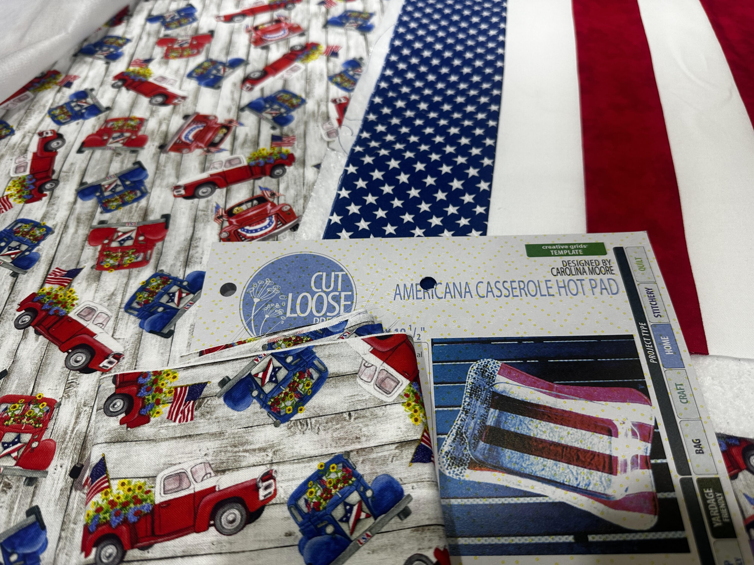 Sewing Club will be making a Casserole Hot Pad! This Hot Pad will fit your favorite 9×13 casserole dish, and protect the table from your hot dish. Think of it as a Bowl Cozy for your Pyrex Casserole! We are doing these with a Patriotic theme, which will be ready just in time for your 4th of July get-together!