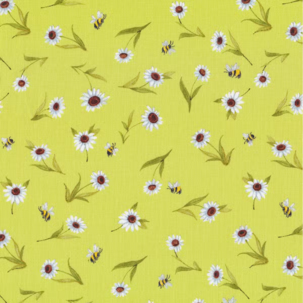 Experience a whimsical world of buzzing delight with the Buzzin’ With My Gnome-iezz fabric collection by Susan Winget from Wilmington Prints. This charming collection is filled with adorable gnomes, busy bees, delightful toadstools, and cheerful daisies. This fabric features tossed daisies with bees on a vibrant green background.